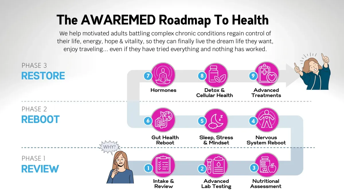One of our experienced patient care specialists will reach out to answer your questions, offer guidance, and discuss how AWAREmed’s holistic treatment approach can support your healing journey.
