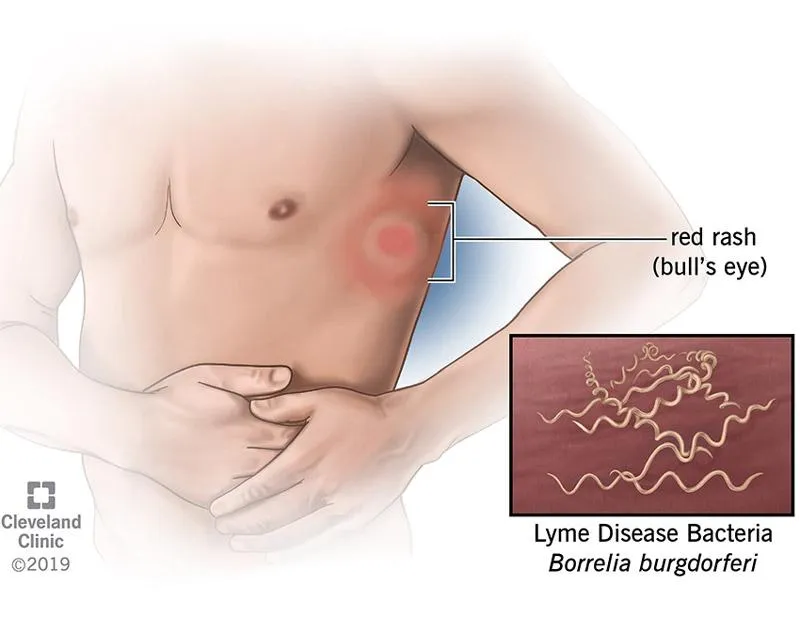 Typical symptoms include fever, headache, fatigue, and a characteristic skin rash called erythema migrans. If left untreated, infection can spread to joints, the heart, and the nervous system. Lyme disease is diagnosed based on symptoms, physical findings (e.g., rash), and the possibility of exposure to infected ticks.
